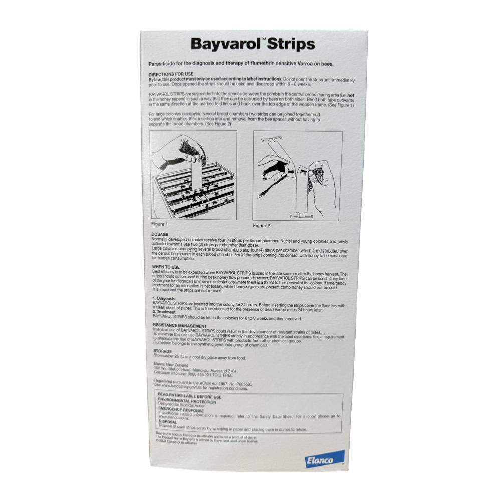Bayvarol is a trusted, highly effective Varroa mite treatment designed to help beekeepers protect colony health. This 20 strip box contains 5 Doses (4 strips per dose).